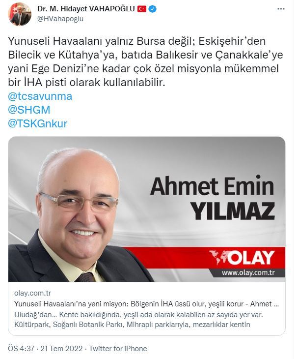 Yunuseli Havaalanı’nın ‘İHA üssü’ olması önerisini Ankara’ya taşıdı