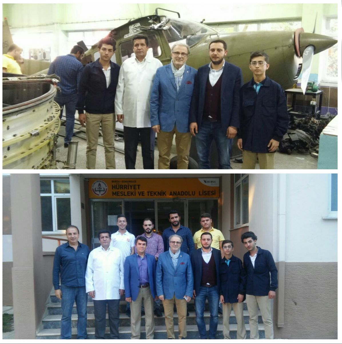Yine AK Parti Osmangazi İlçe Gençlik Kolu organizasyonuyla Hürriyet Endüstri Meslek Lisesi Müdürü Metin Sezer ile Uçak Bakım Bölümü Şefi Mehmet Ali Akiş, bölüm öğretmenlerinden Serkan Tezcan ve Şerif Tosun insansız hava aracı üretme projesi hazırlayan liseli gençleri dinlemişler.