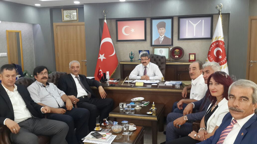 Türkiye Yörük Türkmen Birliği Genel Başkanı İrfan Tatlıoğlu yönetici arkadaşıyla birlikte Bilecik Valisi Süleyman Elban ve Bilecik İl Genel Meclisi Başkanı Oğuz Setler’i ziyaret etti.