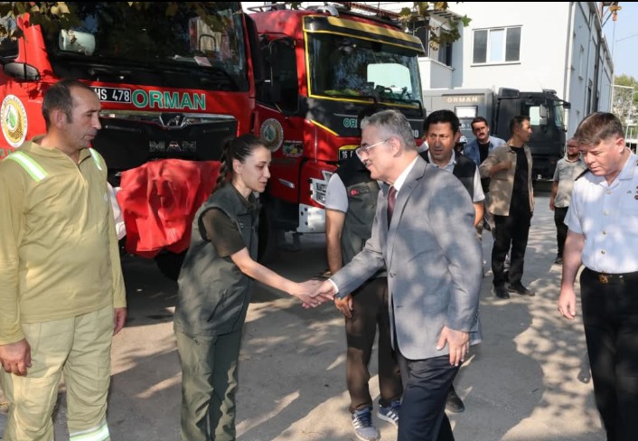 Vali Ayyıldız bu kez Orman Bölge Müdürlüğü’nü ziyarete giderek, yangınlarda cansiperane mücadele eden orman kahramanlarına teşekkür etti.