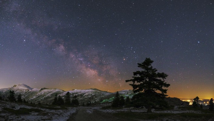 Uludağ Fatintepe’de, yaz mevsiminin kapıyı açtığı mayıs ayında karla kaplı tepelerin üstündeki muhteşem Samanyolu görüntüsü çıktı.