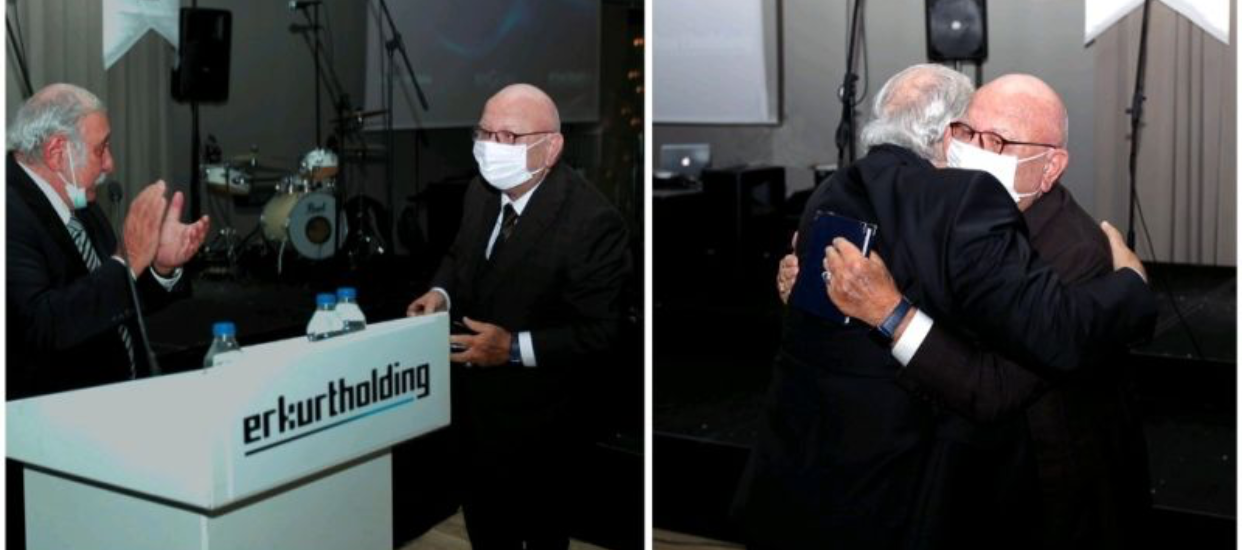 Erkurt Holding Kurucusu, Maliye ve Dışişleri eski bakanı Ahmet Kurtcebe Alptemoçin’den plaketini alırken çok duygulandığı da fotoğrafa yansımış.