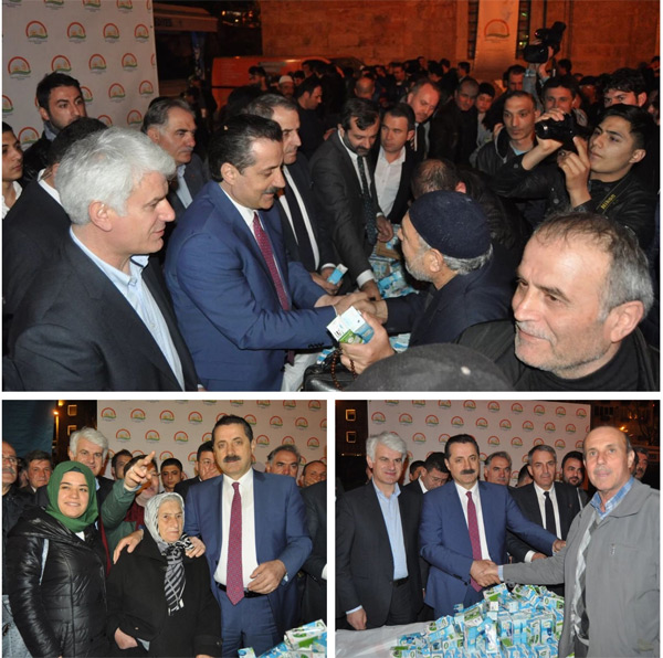 Bakan Faruk Çelik kandilde Ulucami çıkışı süt dağıttı
