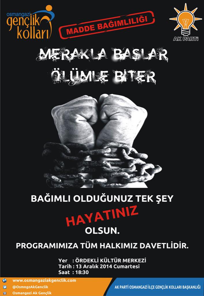 Osmangazi’deki tüm lise ve ortaokulların davet edildiği, Amatem uzmanlarının konuşmacı olacakları panelin afişinde ise “Bağımlı olduğunuz tek şey hayatınız olsun” deniliyor.