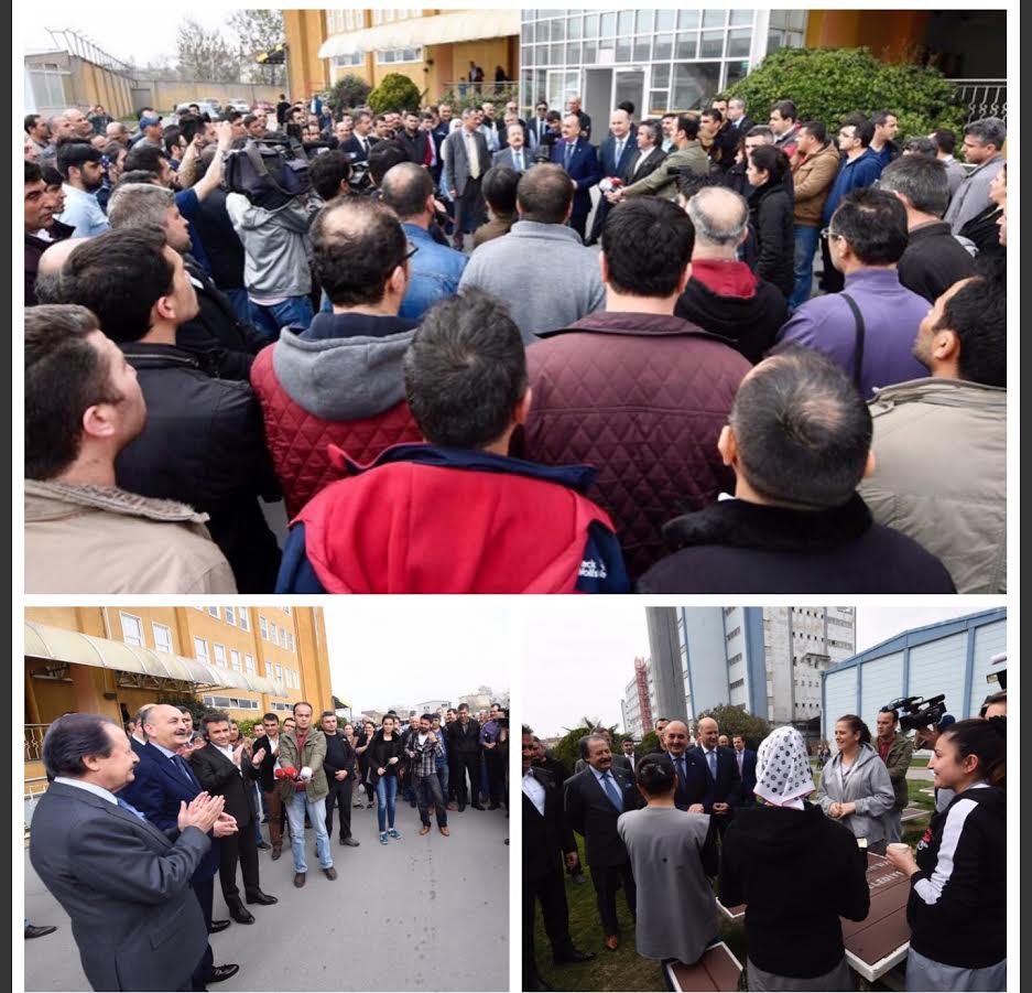 Sahadaki çalışma yöntemlerine bir yenilik de Çalışma ve Sosyal Güvenlik Bakanı Mehmet Müezzinoğlu kazandırdı: Fabrika mitingleri.