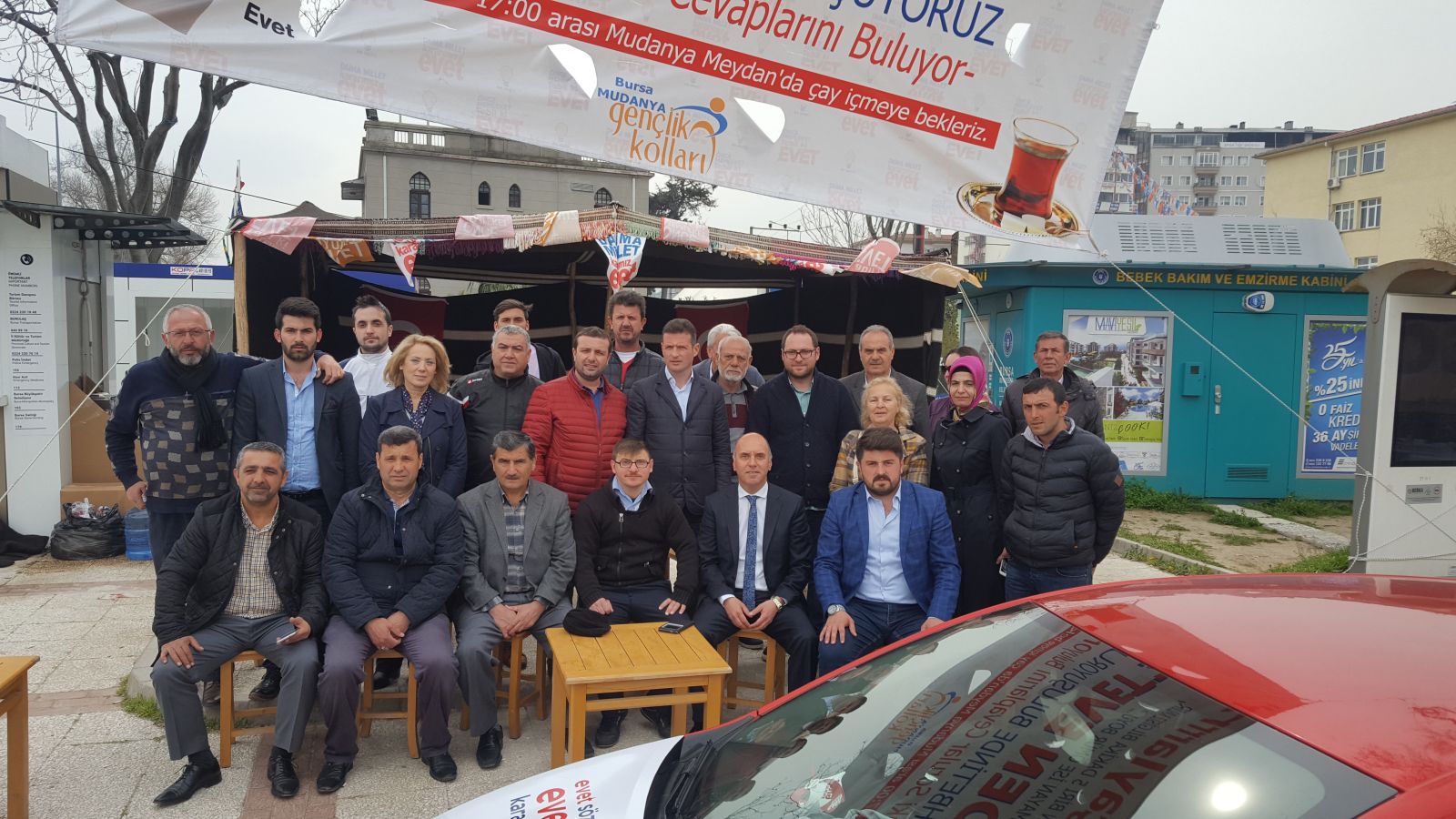 AK Parti Mudanya Gençlik Kolu Başkanı İzzet Dursun ise çalışmalarını anlatırken, “Sabah erken başlayıp akşam geç saate kadar anlatıyoruz. Günde 40 demlik çay demliyor ve yaklaşık 300 bardak çay ikram ediyoruz” dedi.