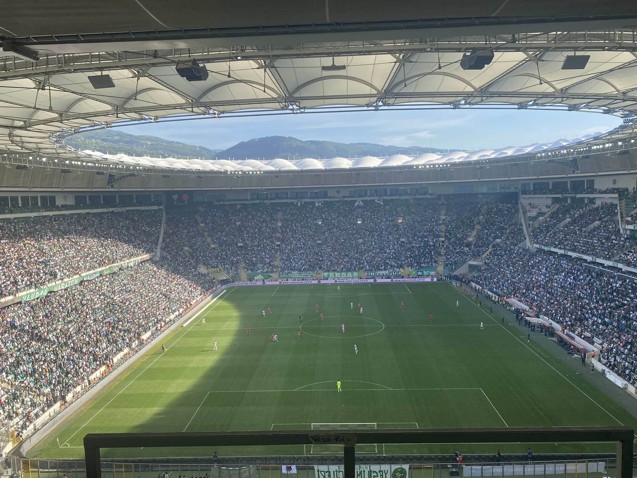 Yeniden Süper Lig Şampiyonluğu maçı oynuyormuşçasına tribünleri dolduran ve uzatma dakikalarının son saniyesine kadar Bursaspor’a destek veren 30 bini aşkın taraftarı izlerken heyecanlanmamak elde değil.