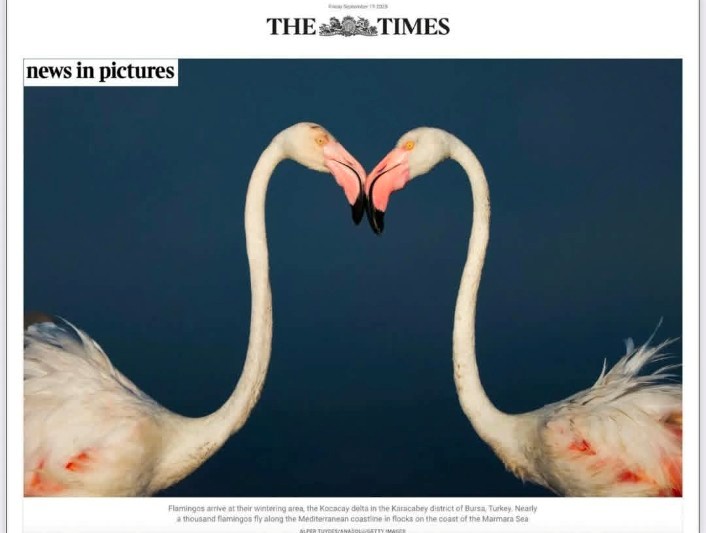 Amerika’da yayınlanan The Times da Karacabey’in flamingolarını haftanın fotoğrafı olarak yayınladı.