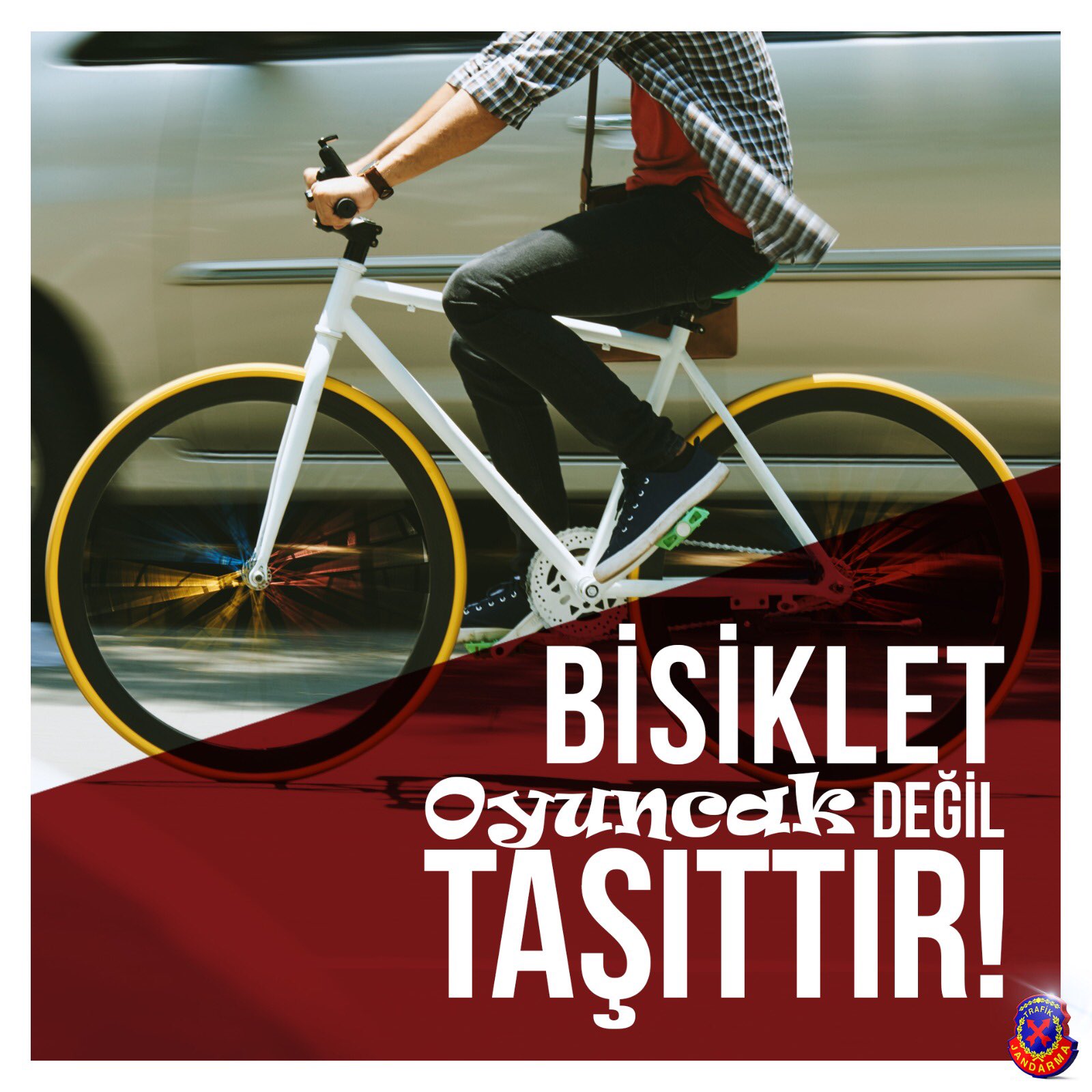 “Trafikte motorlu araçların yanında, insan/hayvan gücü ile kullanılan motorsuz araçlar da yer almaktadır. Bisiklet de bu motorsuz araçlardan biridir. Lütfen trafiğe çıktığınız andan itibaren bisiklet sürücülerinin de trafiğin bir parçası olduğunu unutmayın.”