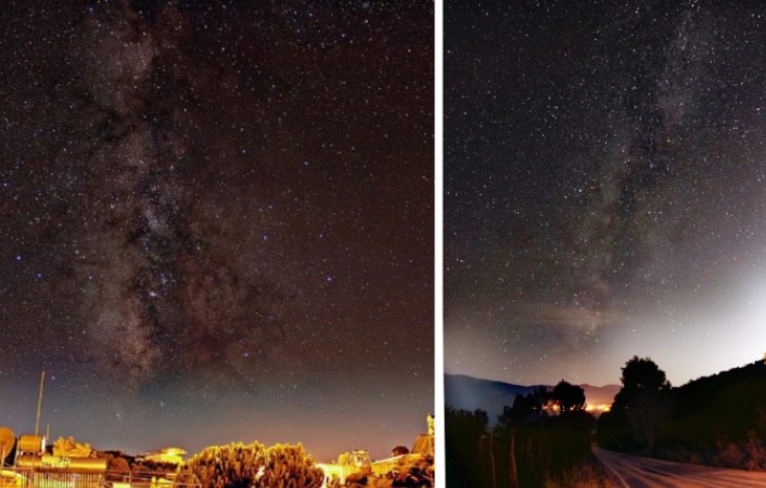 Esence’de denizin üstünde, Kozluören’de ise dağın yamacında adeta serilmiş gibi duran Samanyolu’nun büyüleyici güzelliği sergileniyor.