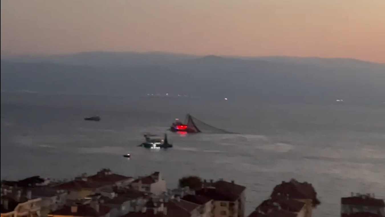 Mudanya Güzelyalı’daki evinin balkonundan sabaha karşı bir vatandaş çekti. Gün ışımadan ve sahilde hareket başlamadan ağlarını atan balıkçılar nafakalarını bekliyorlar.