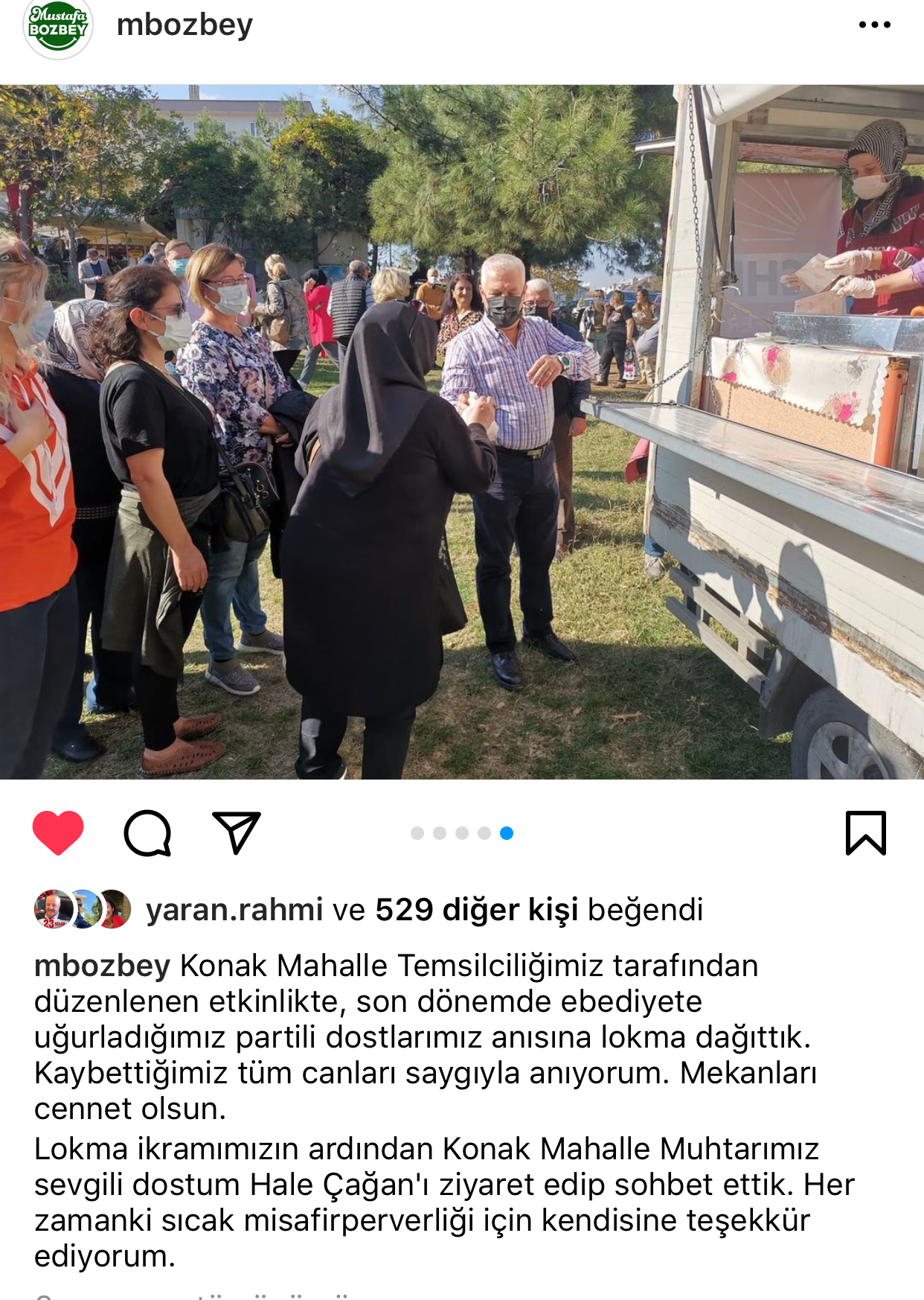 Son dönemde “ebediyete uğurlanan partili dostlar anısına” eline kepçeyi alıp Konak Mahallesi’nde vatandaşlara lokma dağıtan Bozbey, çevrede bulunanlarla da sohbet etti.