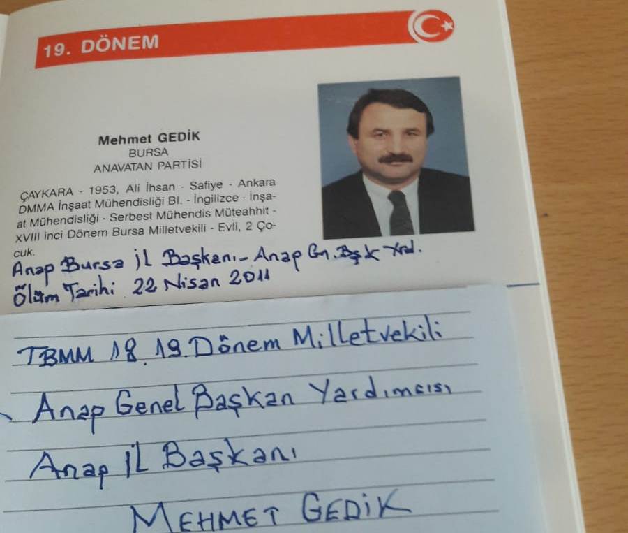 1983 yılında ANAP Mustafakemalpaşa İlçe Başkanı olduğunda tanıdığımız, 1987’de ANAP Bursa Milletvekili seçildiğinde Ankara’ya birlikte gittiğimiz Mehmet Gedik o gece cinayete kurban gitti.