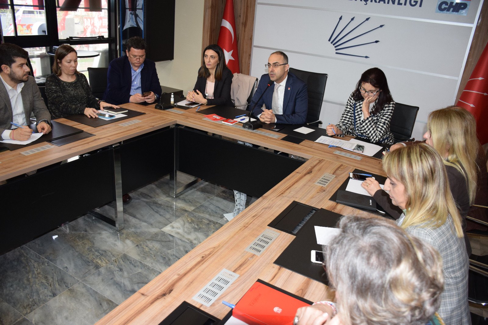 CHP İl Başkanı Turgut Özkan’ın milletvekili adayları ve ilçe başkanlarıyla seçim koordinasyon toplantısında masadaki yerini aldı.