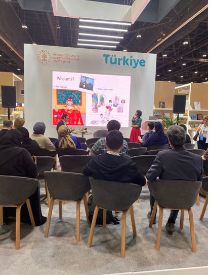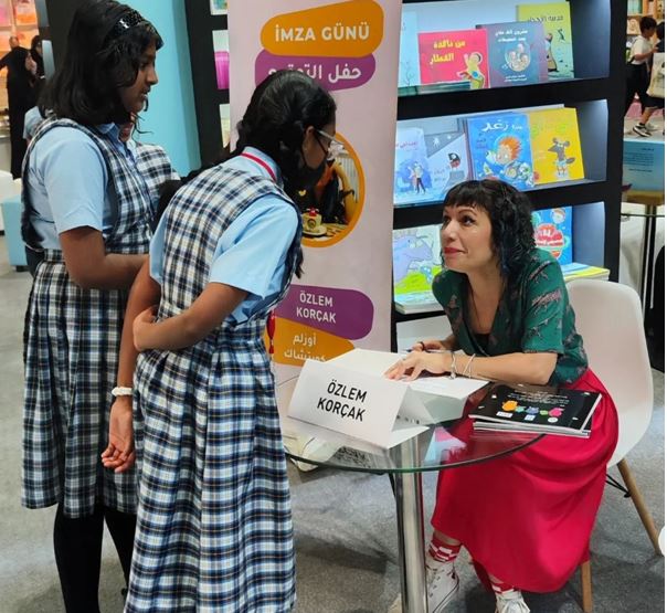 Çeşitli panellere ve atölye çalışmalarına katılan Bursalı çocuk kitapları yazarı Korçak, aynı zamanda Arapça’ya çevrilen Canavarların da Duyguları Var adlı kitabını Arap çocuklarına imzaladı.