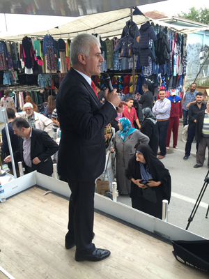Pazara girip-çıkanlar kamyondaki platformda konuşmakta olan Şahin’e pek aldırış etmeden alışverişlerini yapmaya çalışıyorlar. Belki de fark etmiyorlar. Fakat dakikalar ilerledikçe platformun önünde durup dinleyen sayısı artıyor.