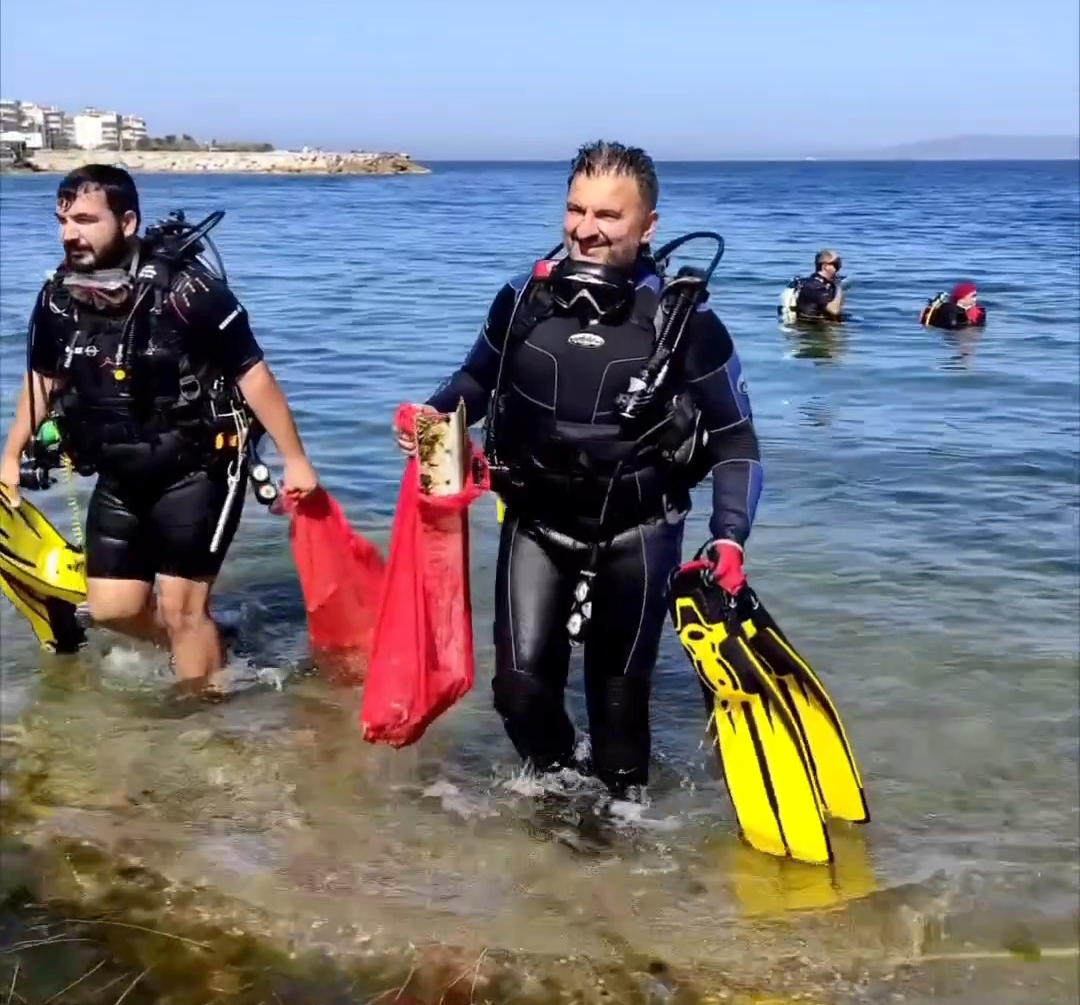 Azot Dalış Kulübü üyeleriyle birlikte, deniz dibindeki çöpleri temizlemek için dalış yaptı. Güzelyalı sahilinden dalgıç giysileriyle denize giren Samast, atılan çöpleri de gözler önüne serdi.
