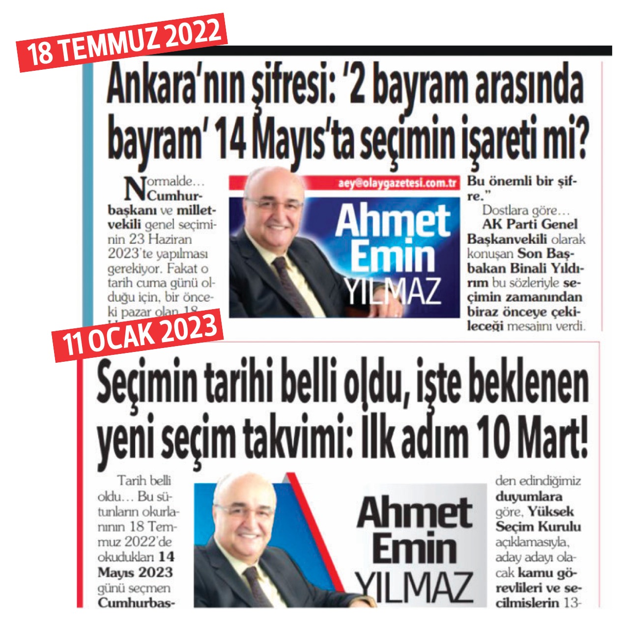 Tarih 18 Temmuz 2022… “Ankara’nın şifresi: ‘2 bayram arasında bayram’ 14 Mayıs’ta seçimin işareti mi?” başlığıyla çok özel Ankara kulisi aktardık.