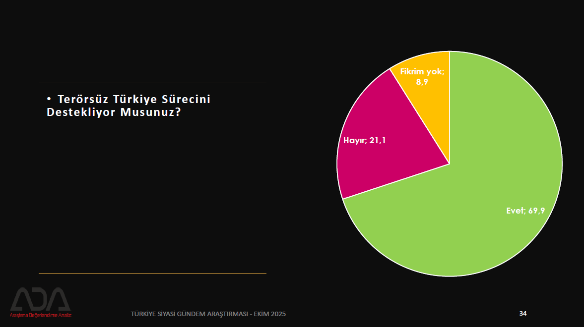 Terörüz Türkiye sürecine destek sorgulanırken yüzde 69.9 evet cevabı verip destek ortaya koyuyor.