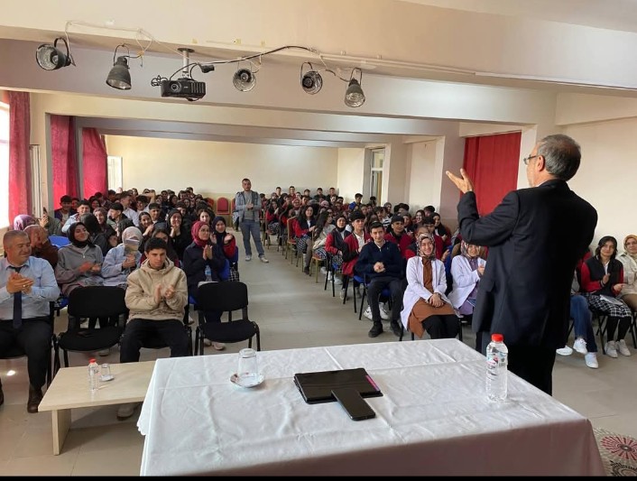Ağrı İmam Hatip Lisesi, ardından Eleşkirt ilçesi Anadolu Lisesi’nde öğrencilere hem Engelleri Aşan Çocuk adlı kitabını hem imzaladı, hem anlattı.