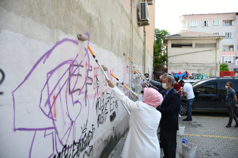 İnegöl’de duvarlara rastgele bir şeyler yazanlara Milletvekili Gürel’le birlikte seslenen Taban şu mesajı veriyor: