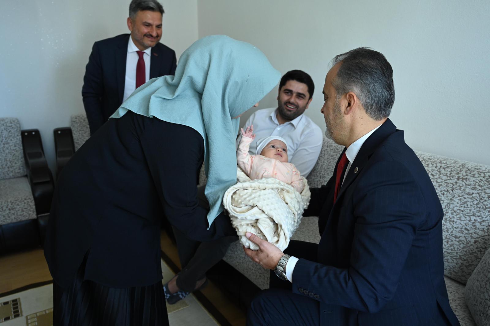 Eşi Mediha Bayrak’la üçüncü evlatları Zulal Berra’nın doğum sevincini yaşarken, Büyükşehir Belediye Başkanı Alinur Aktaş ve AK Parti Mudanya İlçe Başkanı Orhan Samast eve kutlama ziyaretine geldiler.