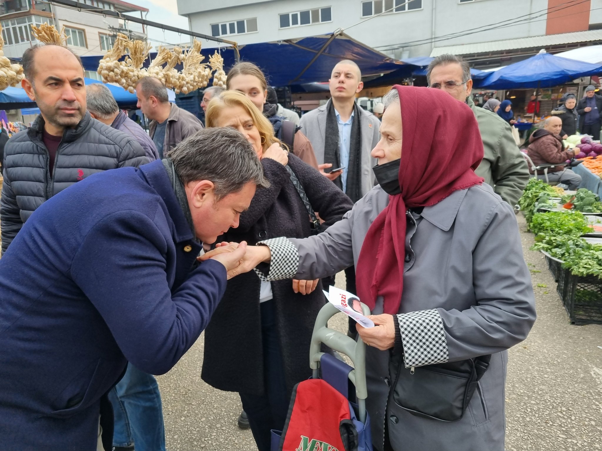 CHP Osmangazi İlçe Başkanı Cengiz Çelikten’le gittiği Küçükbalıklı’da pazaryeri fotoğrafları da, “Mahallenin çocuğu gibi” izlenimi veriyor.