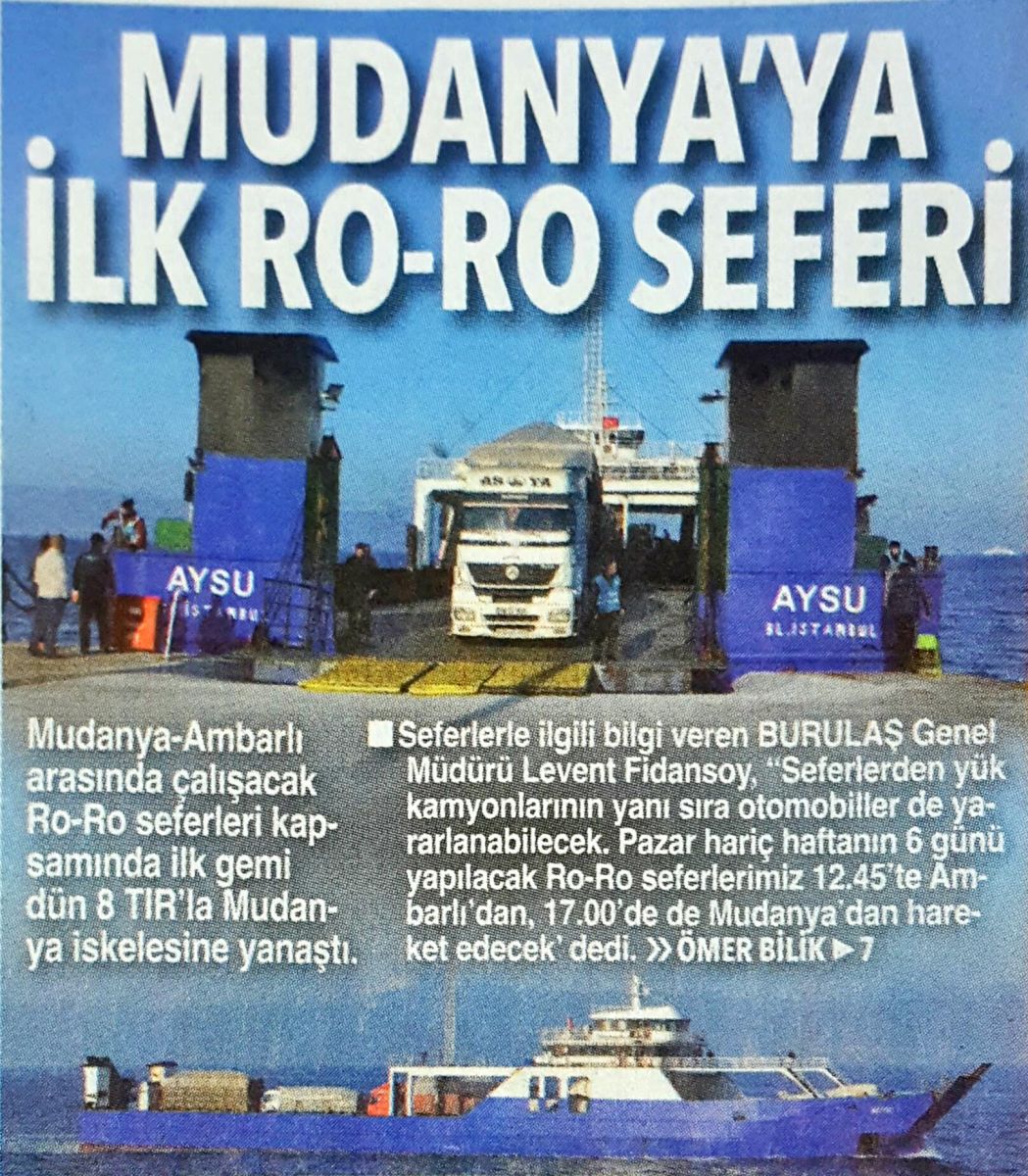 Ömer Bilik’in haberini Olay’da dün okuduk. Büyükşehir Belediyesi’nin ulaşım şirketi olan Burulaş özel sektörden kiraladığı gemiyle Mudanya-Ambarlı arasında ro-ro taşımacılığına başlamış.