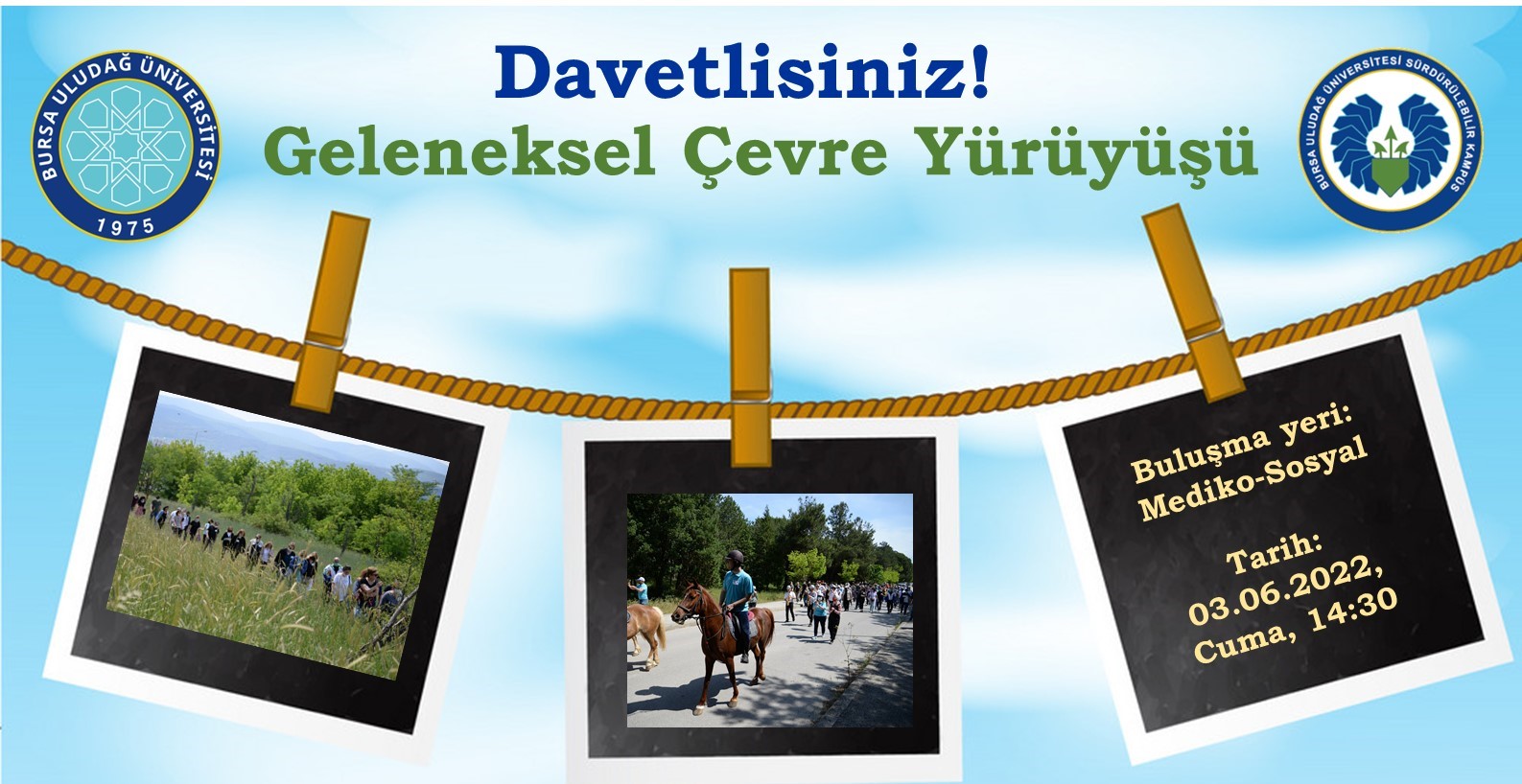 3 Haziran Cuma günü de BUÜ Görükle Kampüsü’nda Çevre Yürüyüşü var. Saat 14.30’da Mediko-Sosyal önünden başlayacak yürüyüşe dileyen bisikletiyle eşlik edebilecek.
