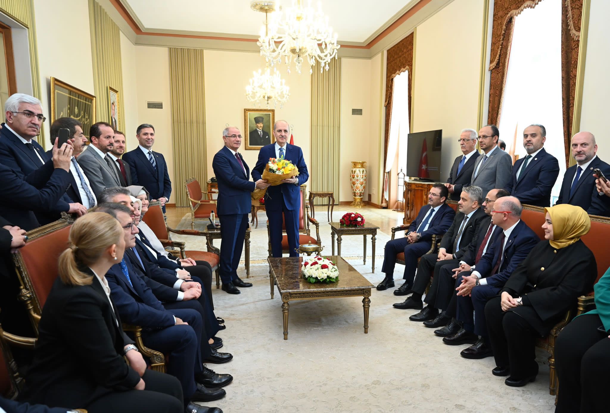 TBMM Başkanı seçilen Numan Kurtulmuş’tan devralırken; AK Parti Bursa milletvekillerinin yanı sıra, İl Başkanı Davut Gürkan ve Büyükşehir Belediye Başkanı AlinurAktaş da salondaydı.