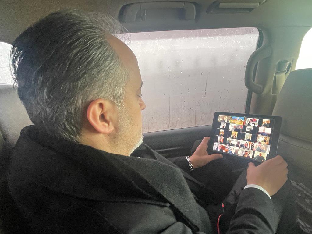 AK Parti teşkilatları ve belediyelerle koordinasyon görüşmesini Aktaş yolda tablet bilgisayardan yaptı.