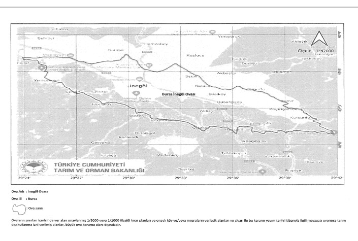 İmara açılan yerlerle alanı küçülen İnegöl Ovası’nın yeni sınırları Resmi Gazete’de yayınlandı.