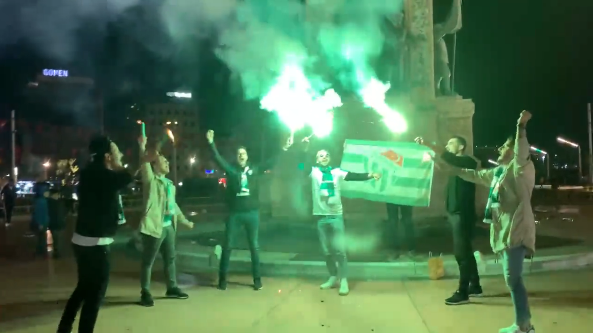 Bir grup Frutti Extra Bursaspor taraftarı basketbolsever de, EuroCup ikinciliğini Taksim Meydanı’nda kutladı.