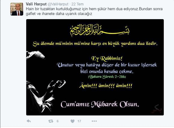 Vali Harput’un sosyal medya sayfasına baktığımızda 15 Temmuz’la ilgili bazı değerlendirmeler yaptığını gördük.