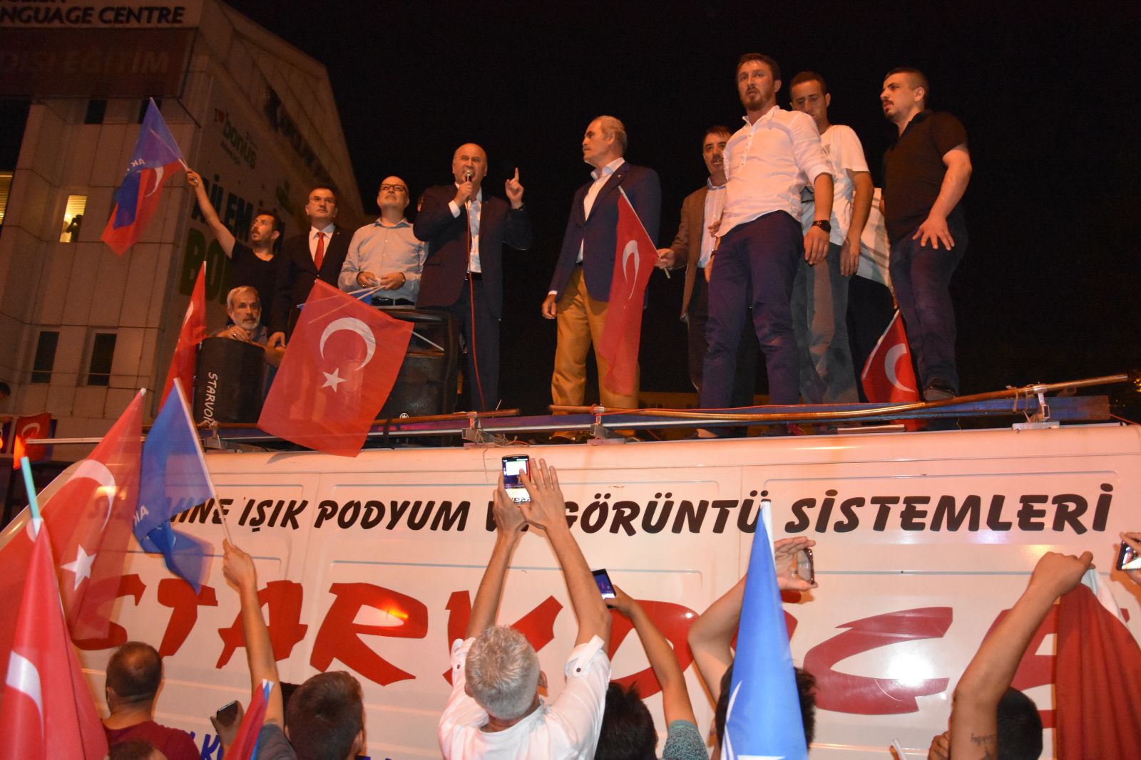 Şehreküstü’deki meydandaysa ilk geceden itibaren Büyükşehir Belediye Başkanı Recep Altepe öne çıktı. Teşkilat organizasyonunu çok kısa sürede yapan AK Parti İl Başkanı Cemalettin Torun’la birlikte meydanı organize edip ve halkın karşısına çıktılar.