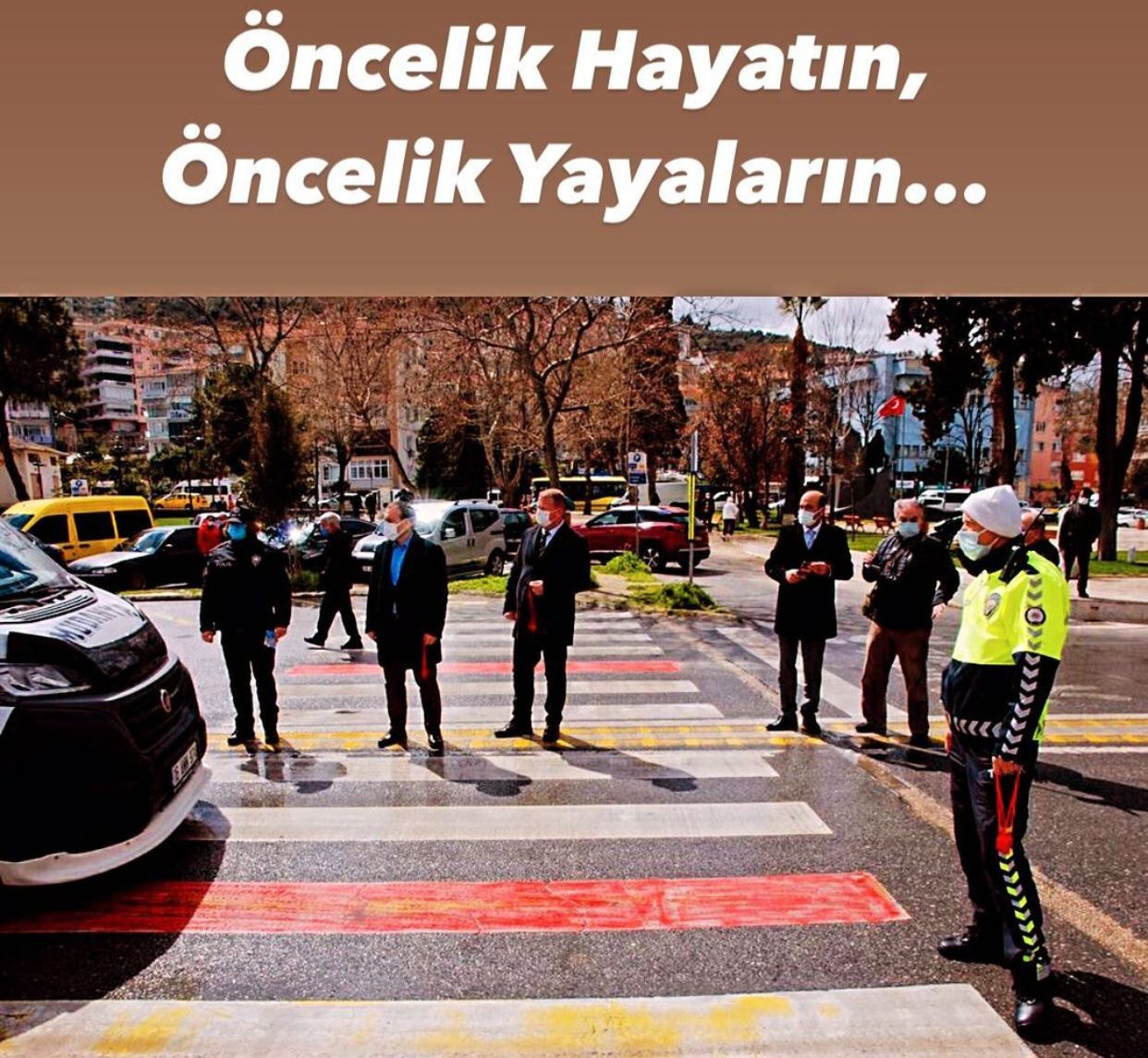 Her alandaki gibi önce insan trafikte de önemli. Bu nedenle önce yaya sloganı ve kırmızı çizgi uyarısıyla kampanya başlatıldı.