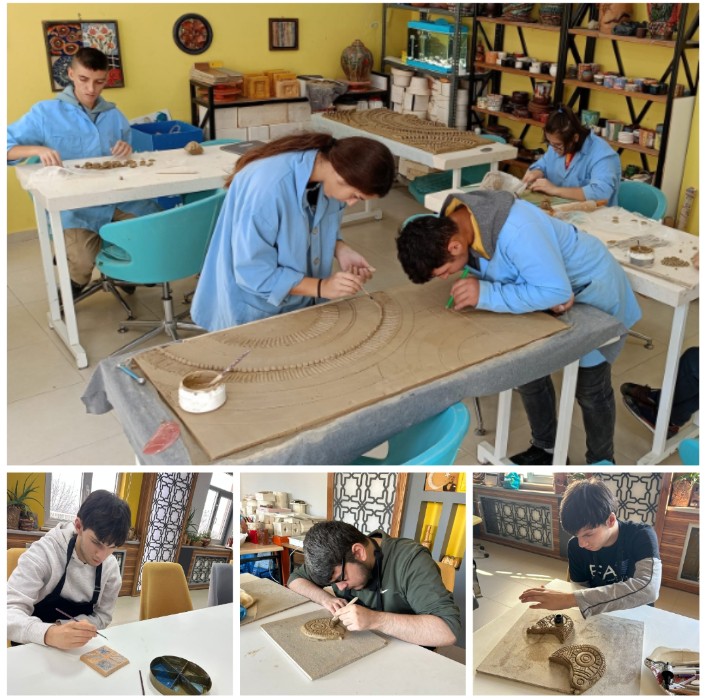 8.5 metre uzunluğunda, 3.5 metre yüksekliğindeki panoya 770 adet irili ufaklı seramik ürün yerleştirip Bursa’nın en özel ve güzel seramik duvarı için en özel gençler harıl harıl çalışıyorlar.