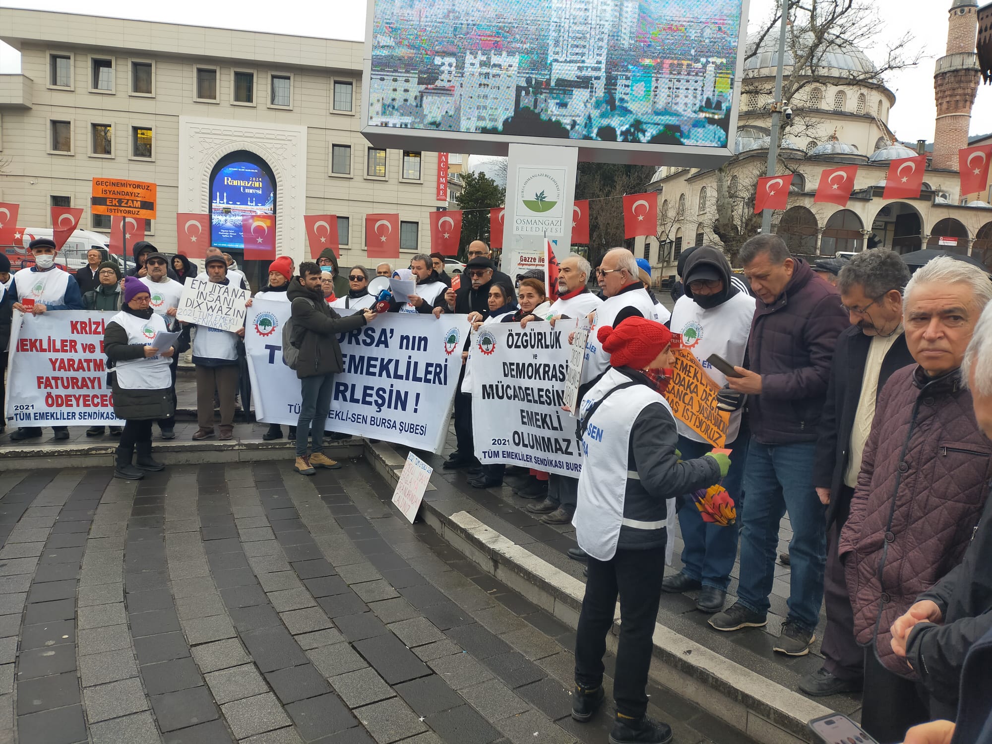 Tüm Emekli-Sen Bursa Şubesi emeklinin sesini duyurmak için Şehreküstü 15 Temmuz Meydanı’nda eylem yaptı.