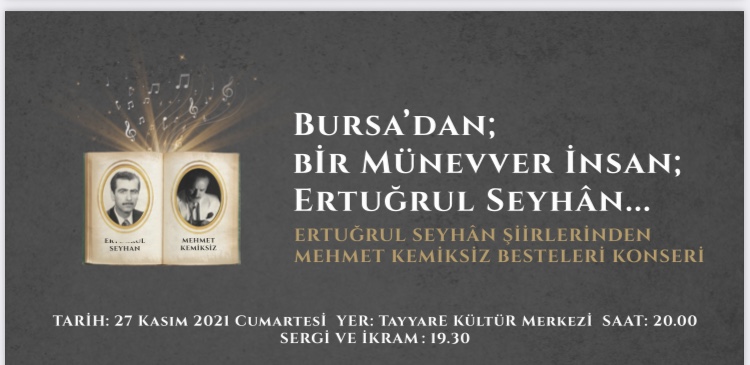 2018’de vefat eden Ertuğrul Hoca’nın Divan’ından bazı şiirleri Mehmet Kemiksiz besteledi. 27 Kasım Cumartesi akşamı Tayyare Kültür Merkezi’nde özel konserde seslendirilecek.
