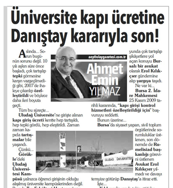 7 yıllık hukuk mücadelesi sonunda Danıştay kararıyla Uludağ Üniversitesi kapılarında alınan giriş ücretinin kalkmasını sağlayan Avukat Erol Kılıkçıer, aralarında yönetici pozisyonunda öğretim üyelerinin olduğu hocaların ziyaretini anlatırken şunu söyledi: