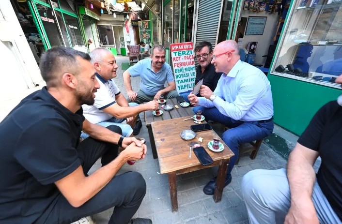 Tarihi Kayhan Çarşısı’nın ara sokaklarında işyerleri olan esnafı ziyaretinde, dükkan önlerindeki taburelerde oturdu. Özellikle de siyaset yapmak yerine, sıcak muhabbeti tercih etti.
