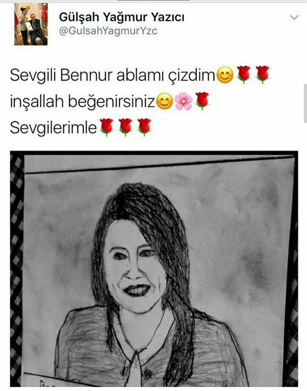 Resmi henüz Karaburun’a ulaştıramadığı için önce sosyal medyadan “Sevgili Bennur ablamı çizdim” notuyla paylaşmış.