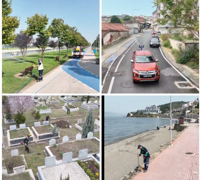 Benzer bir çalışma mezarlıkların temizliğiyle ağaç ve yeşil alanlarının bakımları için yürütülüyor.