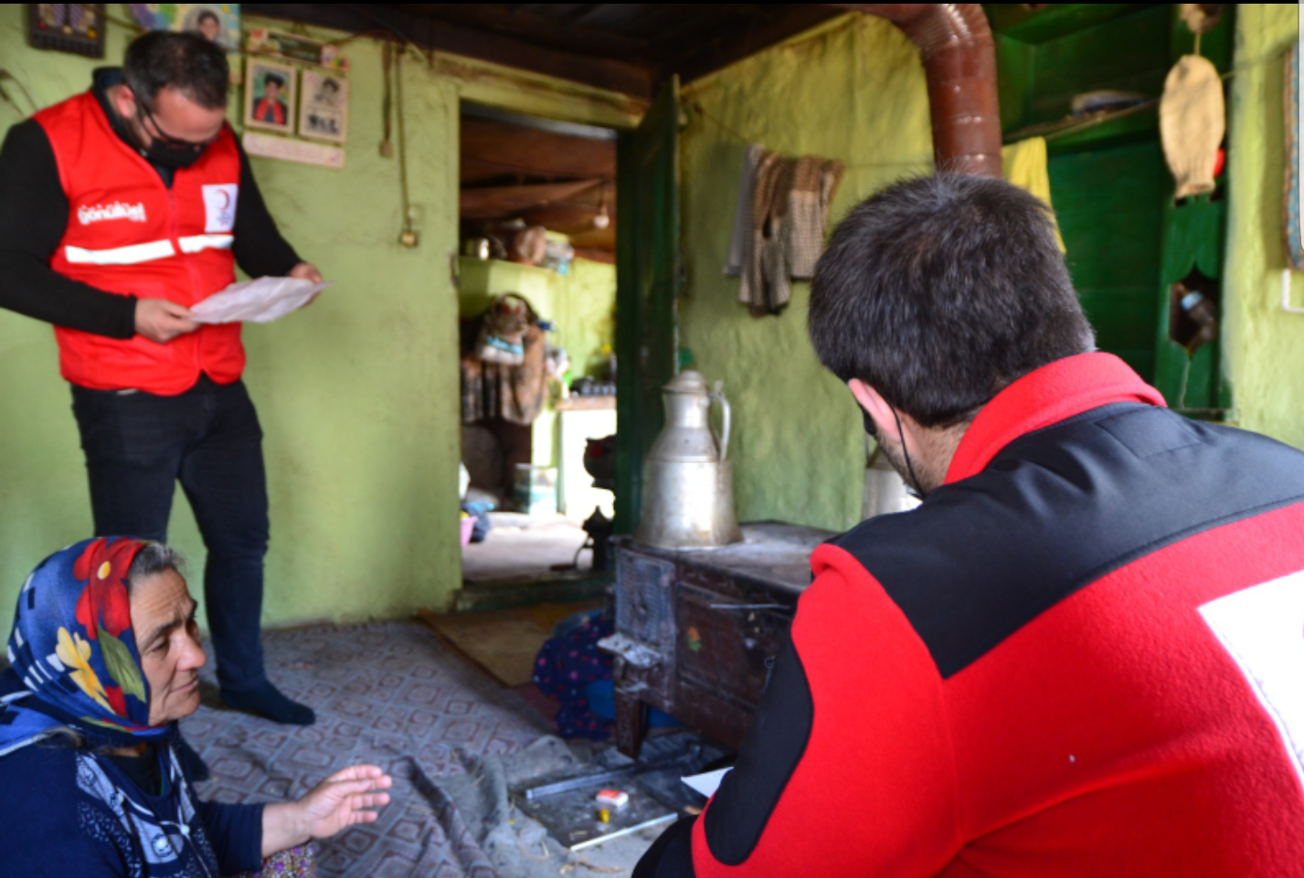 Hafta sonları gönüllüler harekâtı olarak planlanan saha çalışmalarında, kırmızı yelekliler ihtiyaç sahiplerini evlerine giderek belirliyor ve destek sağlıyor.