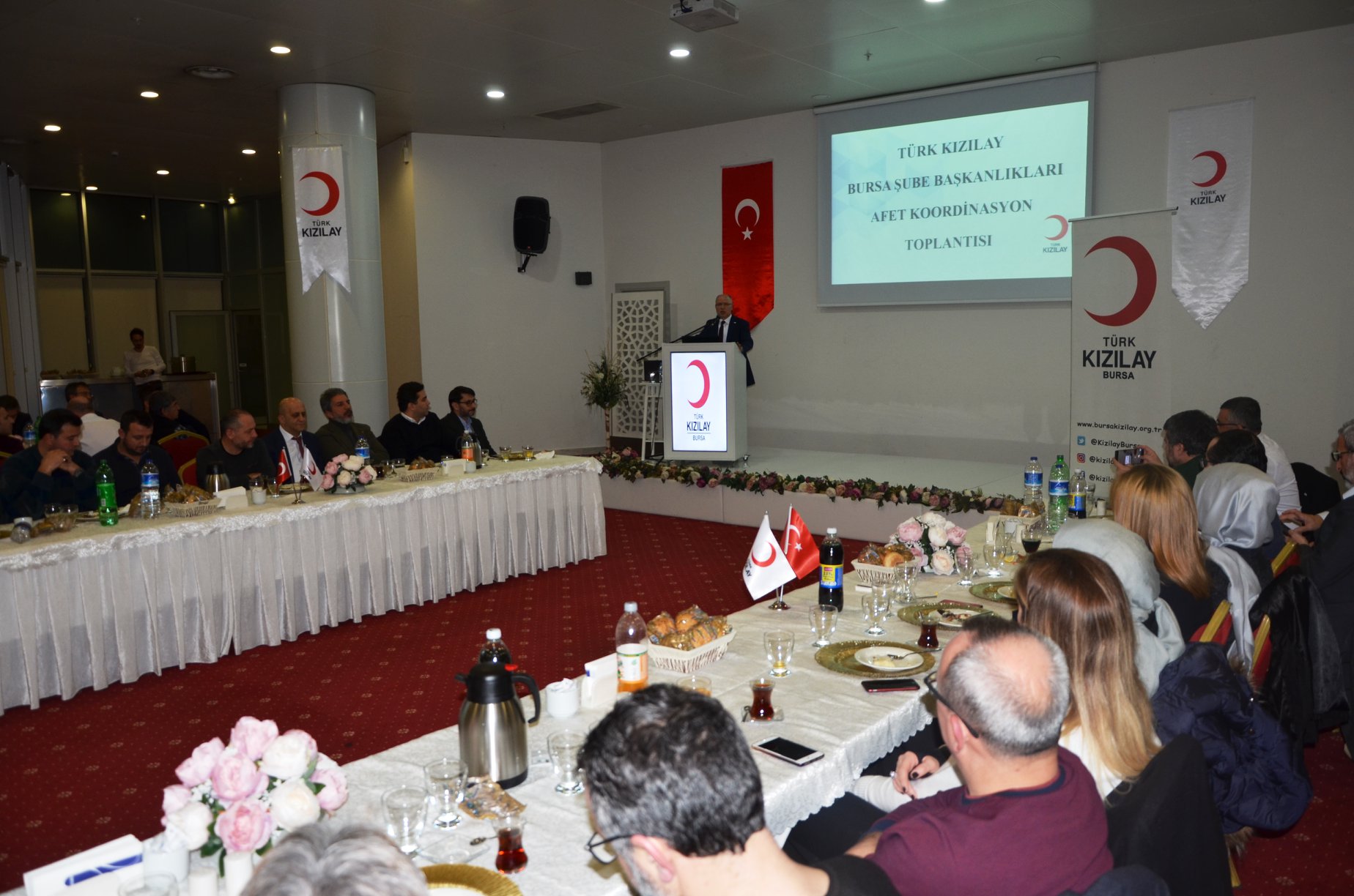 Kızılay Bursa Şubesi Başkanı Davut Gürkan, AFAD Bursa İl Müdürü Yalçın Mumcu, Marmara Bölge Afet Müdürlüğü Planlama Yöneticisi Necati Aksoy, BTÜ Deprem Mühendisliği Uygulama ve Araştırma Merkezi Müdürü Prof. Dr. Beyhan Bayhan’ın yanı sıra Kızılay şube başkanları ve yöneticilerinin katıldıkları toplantıda Bursa’daki afet hazırlıkları ele alındı.