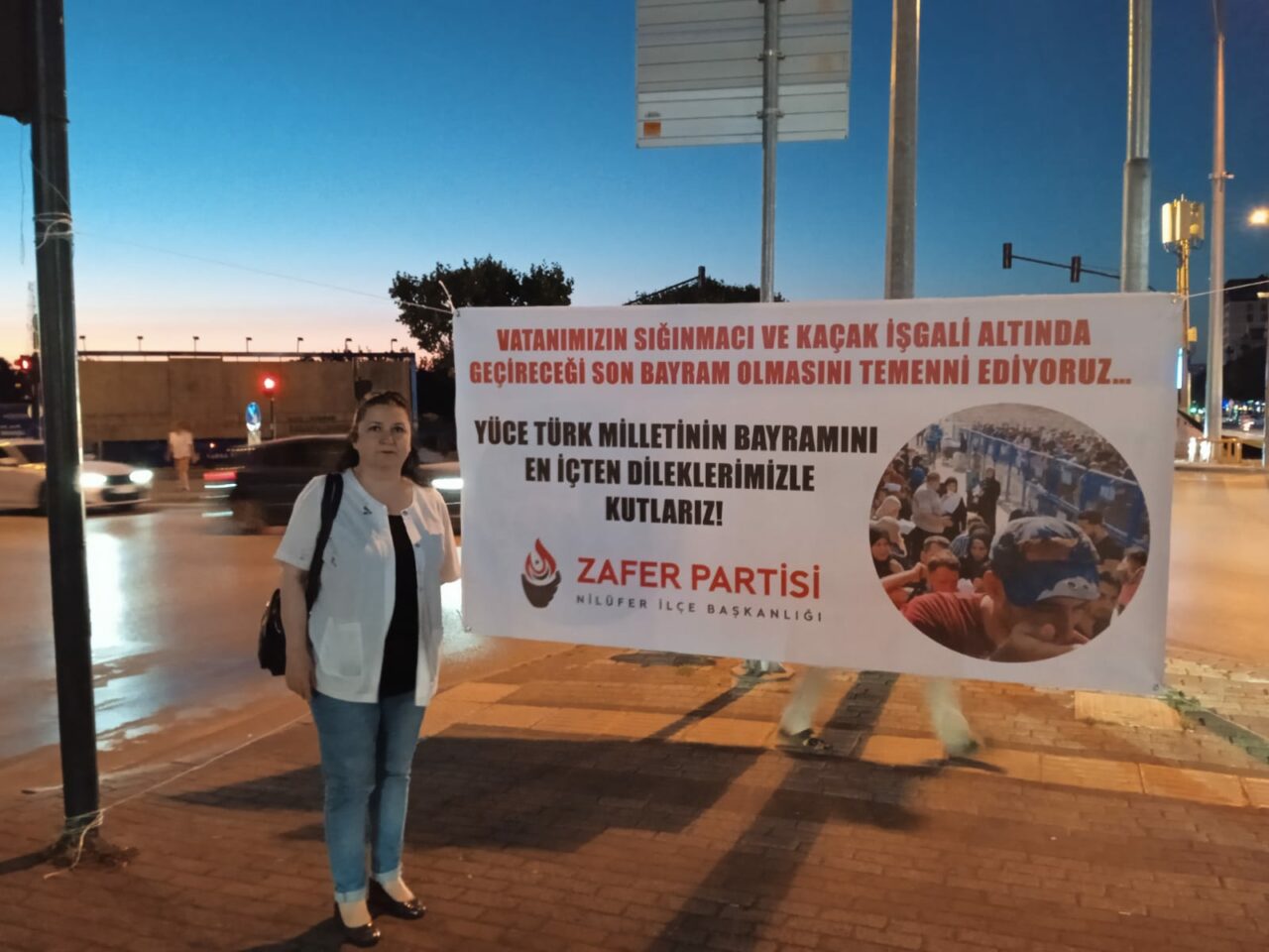 Zafer Partisi bayram pankartı: Sığınmacı ve kaçak işgalinde son bayram