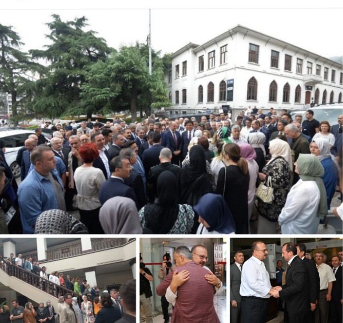 Milletvekilleri, belediye başkanları, bürokratlar, iş dünyası, sivil toplum örgütleri yöneticileri koşarak geldiler. Vali Canbolat da kapıda tek tek ellerini sıkıp vedalaştı.