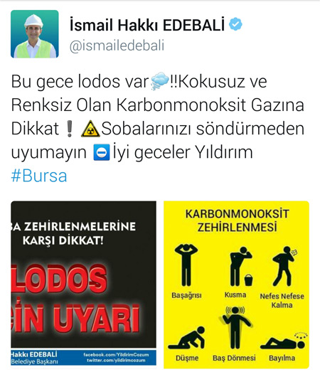 Lodosun etkisi Yıldırım’da daha fazla hissedildiği için, hafta başından beri Yıldırım Belediye Başkanı İsmail Hakkı Edebali sosyal medya araçlarından Yıldırımlıları dikkatli olmaları için uyarıyor.