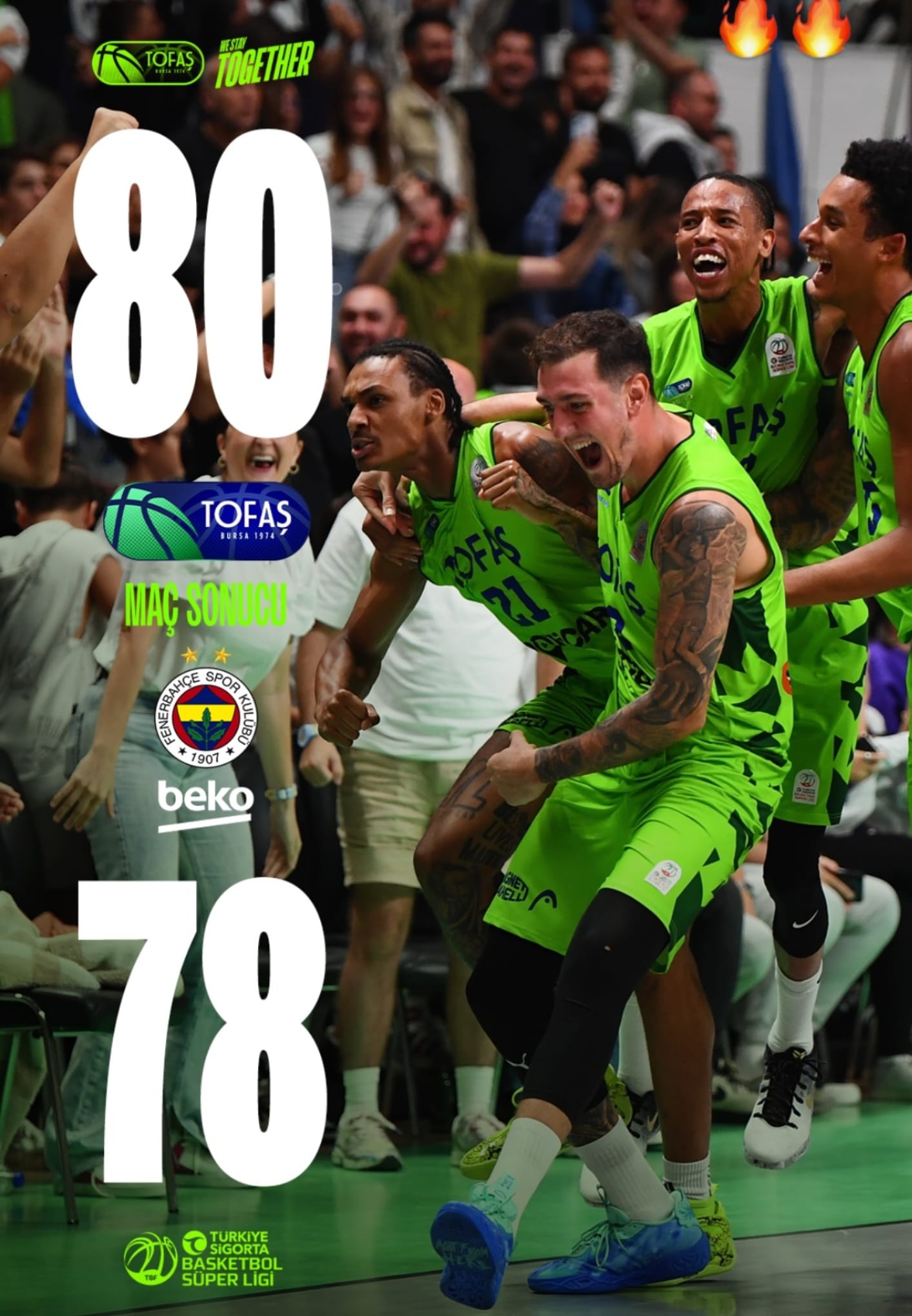 Bursa’da yeni sezon müthiş bir maç ile başladı. Tribünler hınca hınç dolu. Sahada özellikle TOFAŞ tarafında müthiş bir mücadele. Kendinden 10-15 kat fazla bütçeli son Eurolig şampiyonu ve geçen sezon ki 4 kupayı da almış Fenerbahçe’yi, yarım saniye kala attığı basket ile 80-78 yenerken, rakibi bu sayıda tutmak büyük başarı. Mükemmele yakın savunma yaparlarken, Litvanya’lı Blazevic attığı 21 sayı ile ilk maçında isabetli bir transfer olduğunu gösterdi.