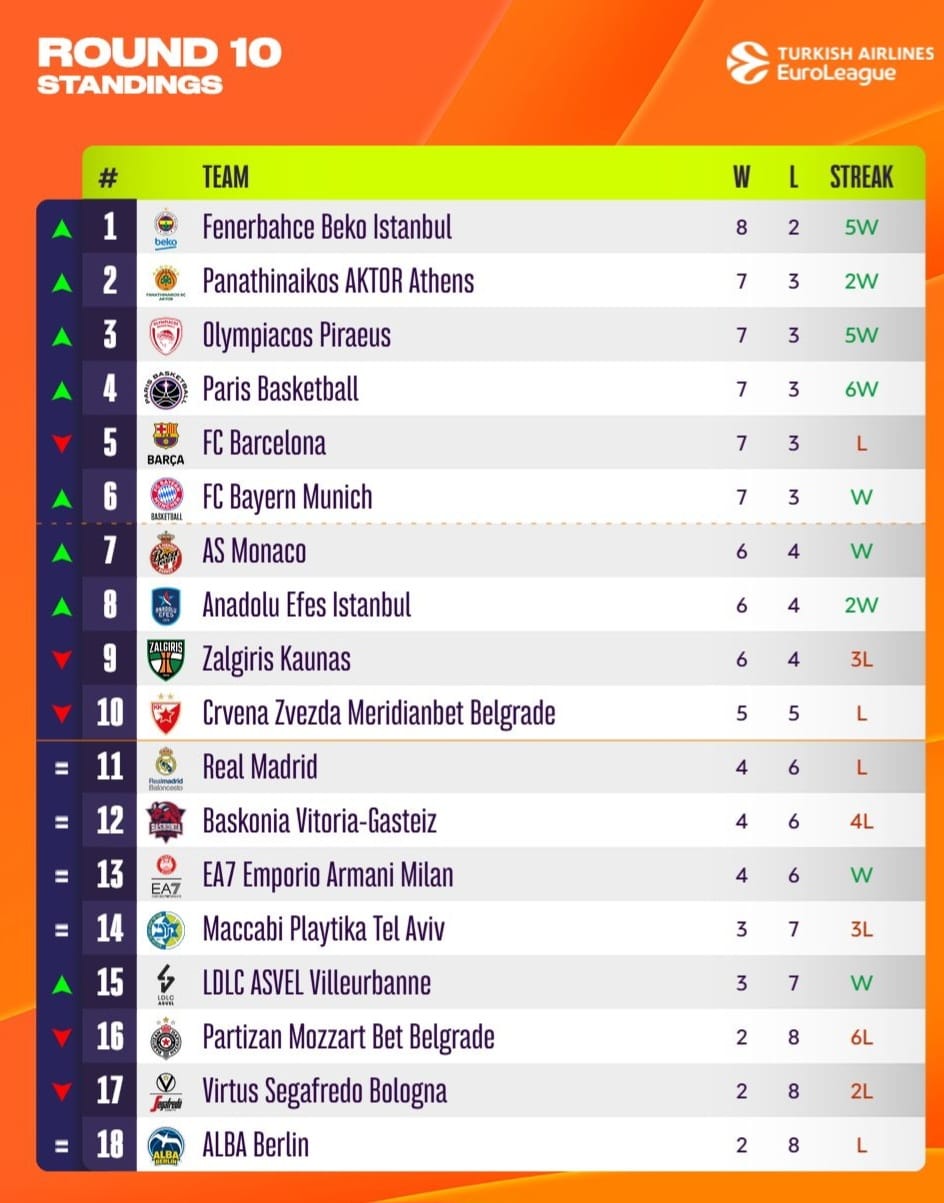 Fenerbahçe ise başta Hayes ve Litvanya da ona ilave olarak Guduric ile sezona en istikrarlı başlangıcı yapan iki takım Bayern ve Zalgiris’i geçerek liderlik koltuğuna oturdu.
